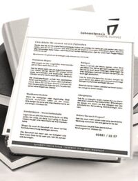 Bitte bringen Sie den ausgefüllten Anamnese-Bogen zu Ihrem ersten Besuch mit. Falls Sie diesen nicht von uns zugeschickt bekommen haben, können Sie ihn von unserer Homepage herunterladen und ausdrucken. Selbstverständlich erhalten Sie ihn auch bei uns in der Praxis.